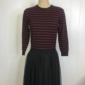 English Factory Black/Red Stripe Midi Sweater Dress With Tulle Skirt L