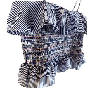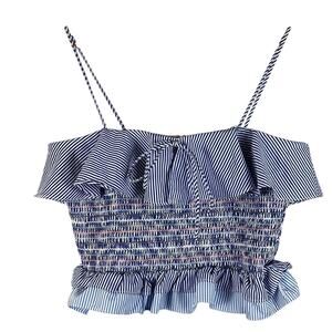English Factory Blue & White Ruffled Smocked Cropped Top Size Large