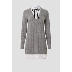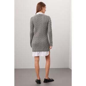 Gray knit (Shell: 50% Acrylic 45% Nylon 5% Wool - Contrast: 100% Cotton). Sweater Sheath. Long sleeves. Collar. Pull on. 33.5"" from shoulder to hemline. Imported.