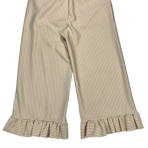 - Description: English Factory Capri Pants Sz M Cream Mustard Striped Ruffle Preppy Nautical
