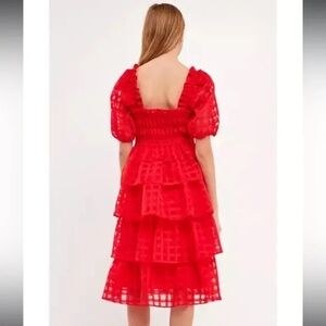 Elevate your evening look with this tiered dress. With its classic silhouette and modern print, this dress is perfect for any formal event. The tiered skirt will catch everyone's eye, while the square neckline adds a touch of elegance. Pair this dress with heels and a clutch for an unforgettable evening look.