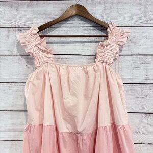 English Factory Color Block Midi Dress Size Large Tiered Pink Ruffle Strap
