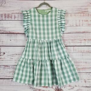 English Factory Cottagecore Dress S GreenWhite Check Ruffle Tiered Peasant