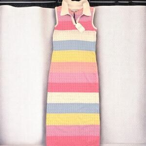 English Factory Crochet Knit Maxi Dress Rainbow NEW