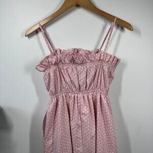 English Factory Dress XS Pink Polka Dot Cotton Pocket Ruffle Cottage Summer Prep