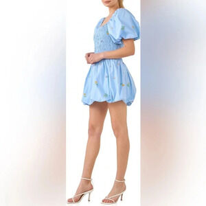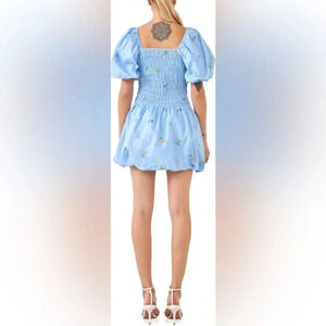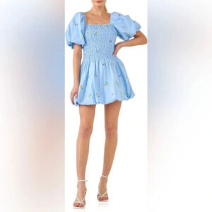 English Factory Floral Embroidery Cotton Puff Sleeve Mini Dress