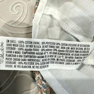 Color: Multi pastel floral with red ric rac trim