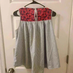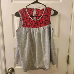 English Factory Floral Tank Size M Blue Red Blouse Striped #G217