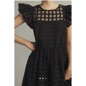 English Factory Fluttered-Sleeve Sheer Gridded Midi Dress Sz Sm Black NWT Length approximately 50 1/2 inches Armpit to armpit approximately 18 inches