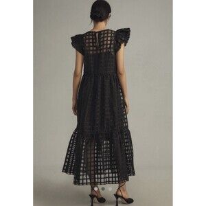 English Factory Fluttered-Sleeve Sheer Gridded Midi Dress Sz Sm Black NWT