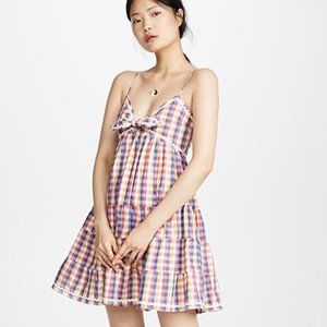 English Factory Gingham Mini Dress with Ribbon Detail NWT