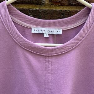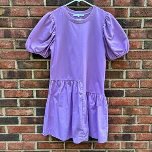English Factory Knit Woven Mixed Dress Lilac Purple Puff Sleeve Mini Size Small
