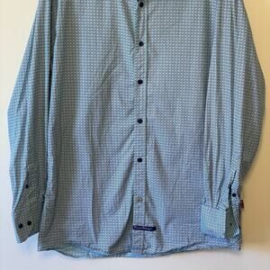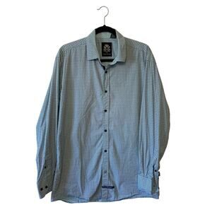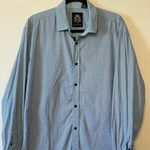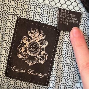 English Factory L 100% cotton long sleeve button down t-shirt AOP blue black