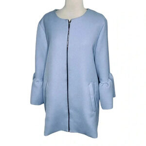 English Factory L periwinkle coat with ruffled flounce sleeves