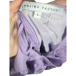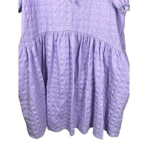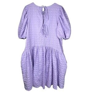 English Factory Lilac Textured Puff Sleeve Mini Dress L Tiered Back Tie Babydoll