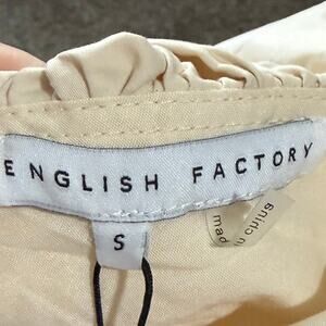 English Factory Midi Dress S Beige Ruffle Neck Sleeveless Cottagecore Girly NWT