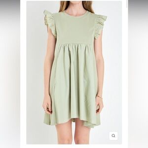 Looking for a dress that's both stylish and comfortable? Look no further than our Mixed Media Ruffle Sleeve Mini Dress from English Factory; made from lightweight fabric. The high-low hem provides coverage while still allowing you to show off your legs, and the ruffle cap sleeves add the perfect finishing touches. Plus, it has pockets! Because who doesn't love a dress with pockets?