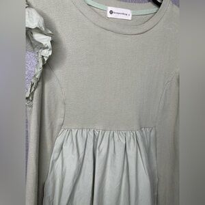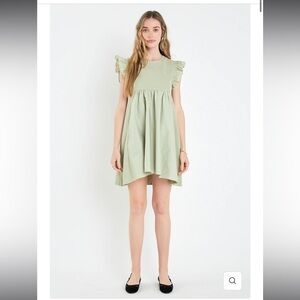 English Factory Mini Dress Womens Green Mixed Media Short Sleeve Ruffled SMALL