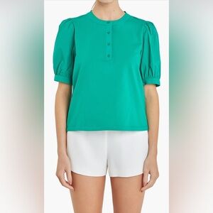 English Factory Mixed Media Puff Sleeve Top L NWT