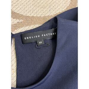 English Factory Navy blue/ colorful ruffle sleeve blouse top, size XS, MSRP $95