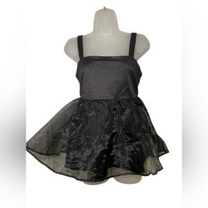 English Factory New NWT Black Empire Waist Tank Top With Organza Overlay Size S
