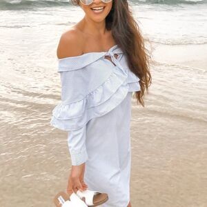 English Factory Off the Shoulder Ruffle Mini Dress || SZ S || Powder Blue