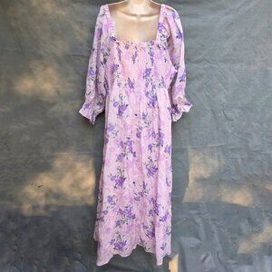 English Factory Pink Floral Smocked Maxi Dress Plus Size 2X Square Neck