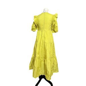 English Factory Puff Short Sleeve Midi Dress Square Neck Ruffle Smocked Detail S
