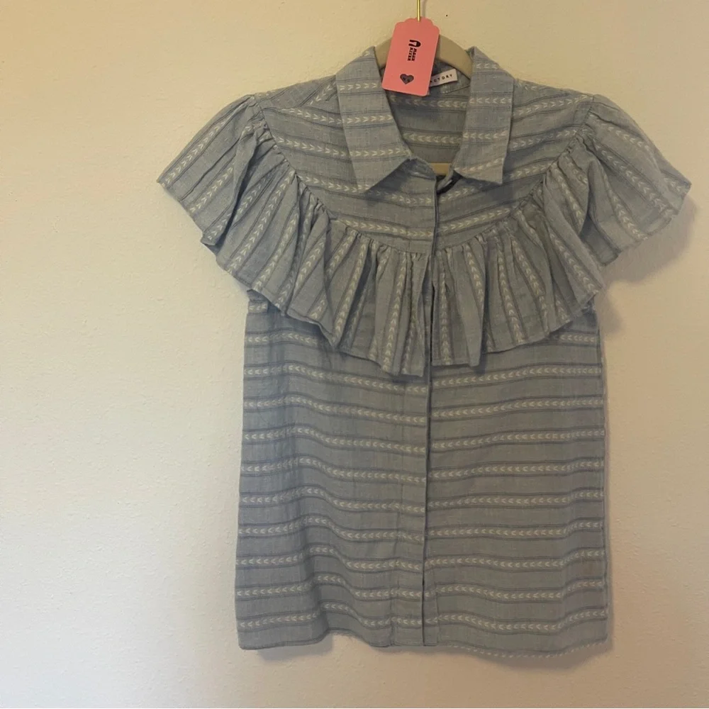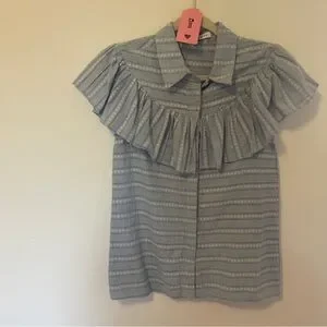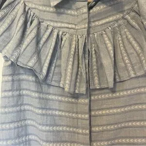 Light blue and white striped peplum top. Great fabric for summer. Really cute with white jeans or shorts.