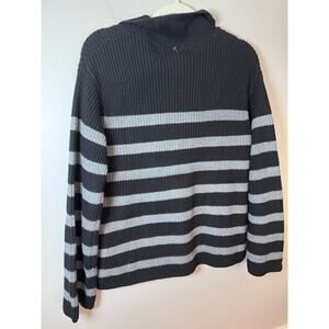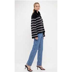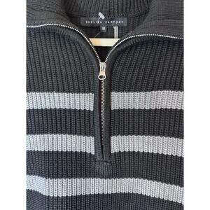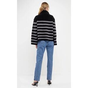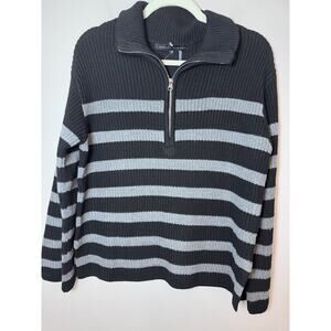 English Factory STRIPED HALF-ZIP SWEATER Grey/black Womens Sz XS NEW