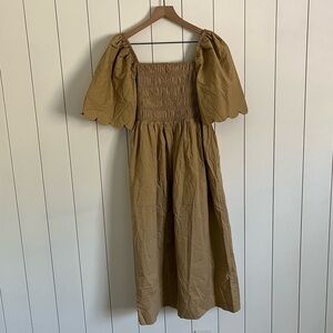 English Factory Scallop Detail Midi Dress Tan