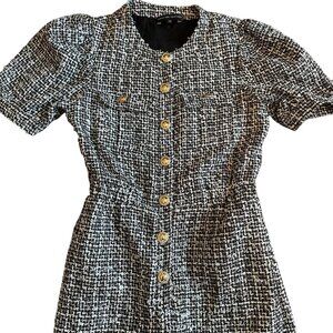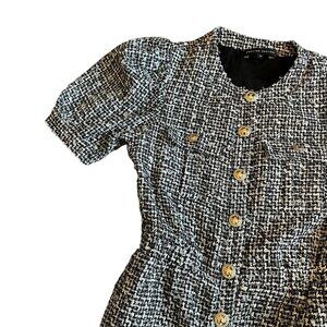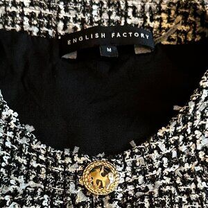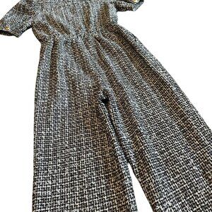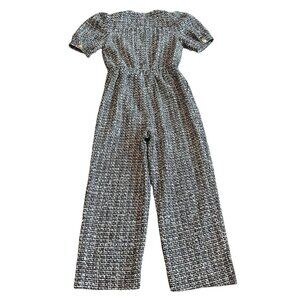 English Factory Short Sleeve Tweed Jumpsuit Cropped Length Gold Size Medium