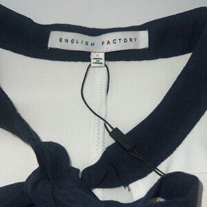 English Factory Sleeveless White Shift Dress With Navy Tie Collar Size Large