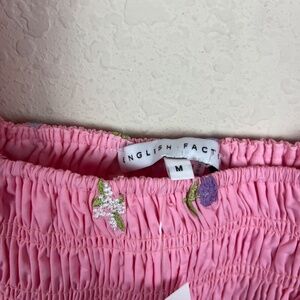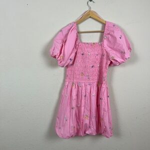 English Factory Smocked Ballon Sleeve Pink Mini Dress Size Medium