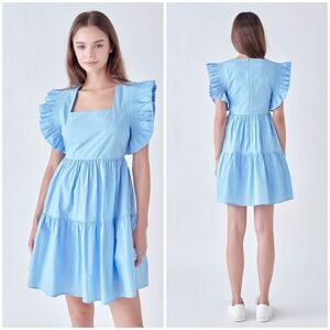 This dress is sure to turn heads with its feminine details. From the square neckline to the ruffle detail at the sleeves, this mini dress is full of pretty features. The invisible zipper at the center back adds a touch of elegance. Pair this dress with your favorite heels for an evening out on the town.