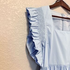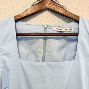 English Factory Square Neck Ruffle Smocked Detail Midi Dress Blue Size Small