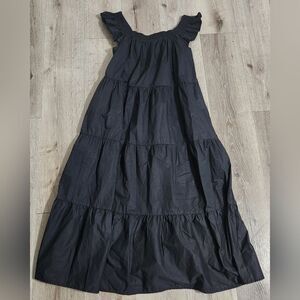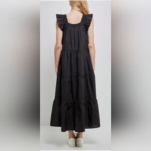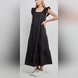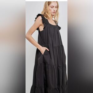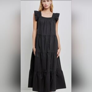 English Factory Square Neck Ruffle Pullover Tiered Midi Dress Women M Black
