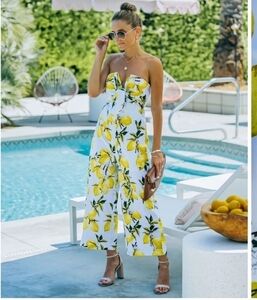 English Factory Strapless Lemon Print Jumpsuit