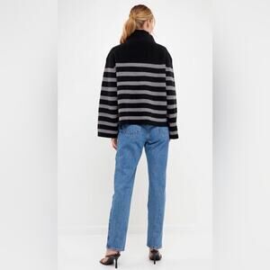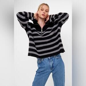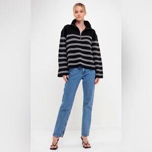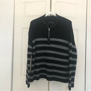 English Factory Striped Half Zip Sweater Black and Grey Stripe Size Large