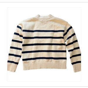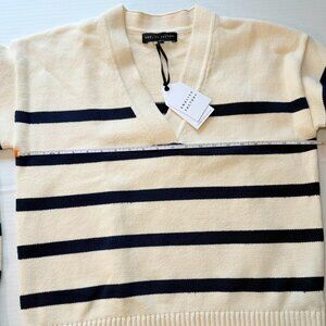 English Factory Striped V-Neck Sweater Cream Navy Heavy Knit NWT Size L