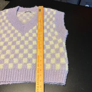 English Factory Sweater Vest Fuzzy Knit Academia Checkered Purple Yellow Women S
