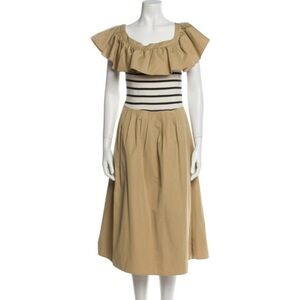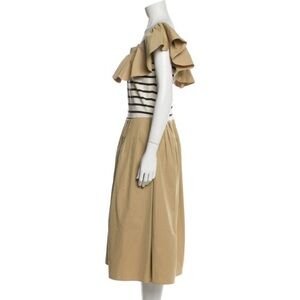 English Factory Tan and Black One Shoulder Flutter Sleeve Sundress