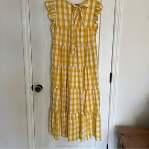 English Factory Textured Gingham Maxi Tiered Baby Doll Dress