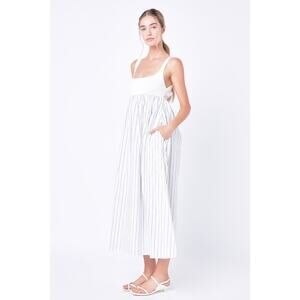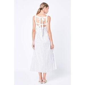 English Factory Tie Back Knit Combo Striped Maxi Dress Sleeveless White XS NWT