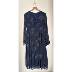 English Factory Tiered Navy Geometric Print Maxi Dress - Small