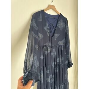 * Tags: English Factory maxi dress,navy geometric print dress,tiered maxi dress,boho chic dress,polyester long sleeve dress