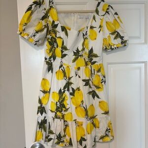 English Factory Tuckernuck Lemon Puff Sleeve Ruffle Dress size small