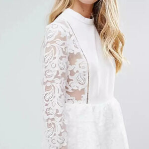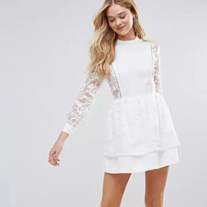 English Factory White Lace Skirt Layered Mini Dress 33198