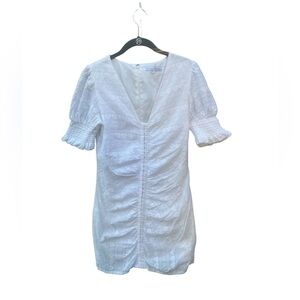 English Factory White Mini Dress with Puff Sleeves. Size M