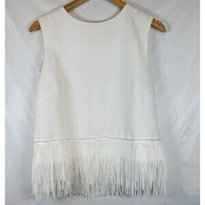 English Factory White Sleeveless Fringe Pearl Accent Top Blouse Women’s Large